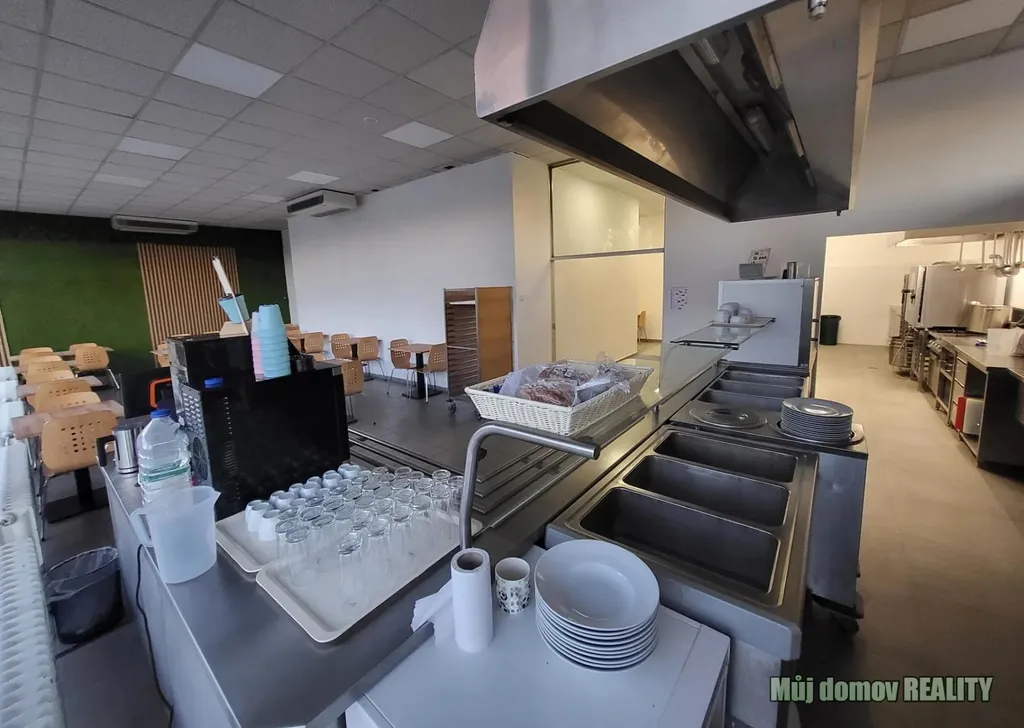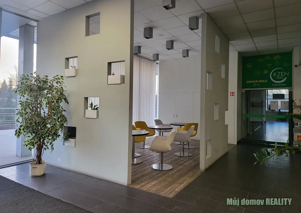 Velkou výhodou je umístění přímo v administrativní budově, což zajišťuje stabilní klientelu z řad zaměstnanců kanceláří. Okolí tvoří rezidenční i komerční zástavba, která přivádí další zákazníky během celého dne. Prostor je ideální například jako firemní kantýna, moderní bistro s poledním menu nebo stylová kavárna s terasou.