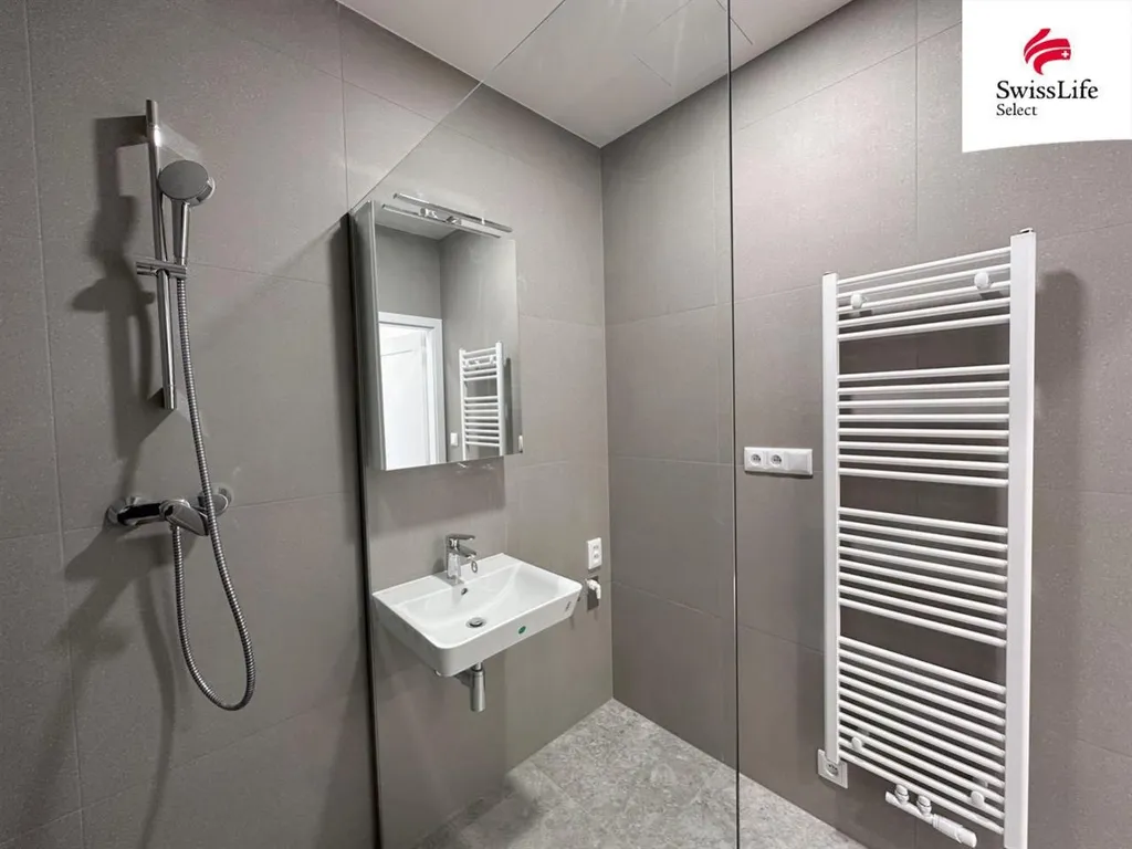 Neutrální barevnost interiéru dává možnost zařídit si ho podle vlastních představ. Součástí je plně vybavená kuchyňská linka, koupelna poskytuje dostatek prostoru i pro umístění pračky a sušičky, toaleta je oddělena. Ložnice je orientována do klidného vnitrobloku, a tak spaní s otevřeným oknem nebude problém. K jednotce náleží také sklep (1,5m), který poskytne další úložný prostor. Vytápění a ohřev vody zajišťuje plynový kotel umístěný v bytě.