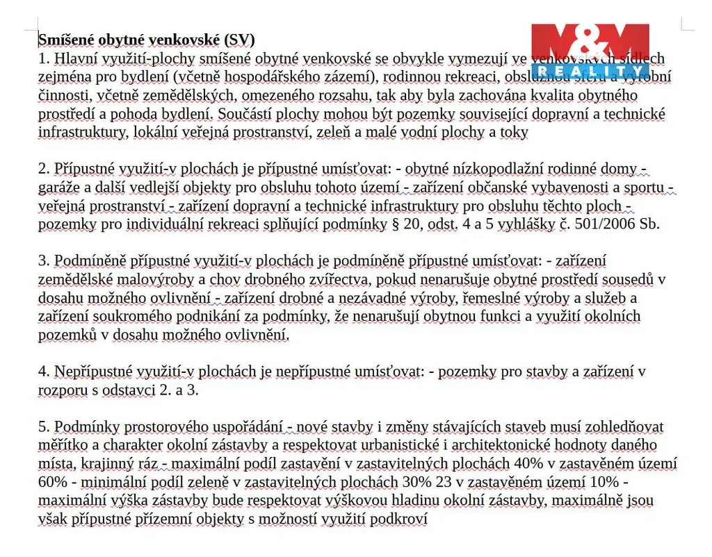 Parametry pozemku