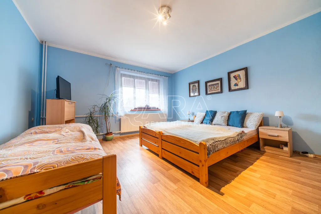 - v patře - 60 m2- chodba, dva samostatné pokoje, půda,