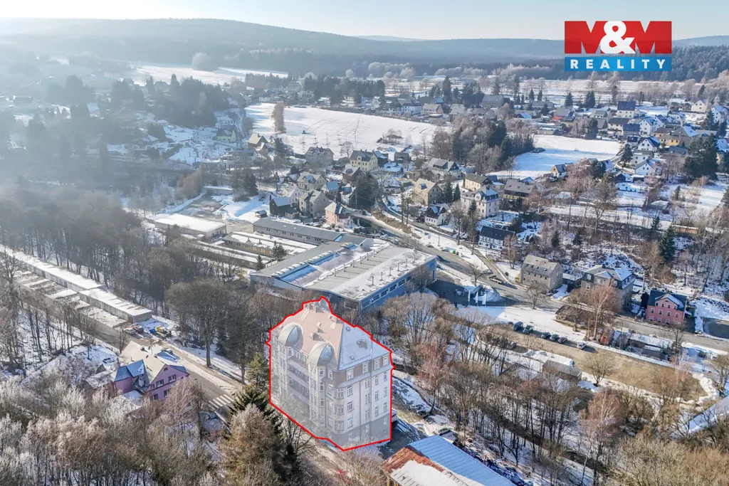 Nabízíme k prodeji prostorný, 128 m² velký byt 3+1 v v příhraniční obci Vejprty v Krušných horách. Byt se nachází ve druhém patře historického bytového domu, který prochází postupnou rekonstrukcí. Je odizolován, má nové sklepy, nová plastová okna. Díky prostoru nabízí pohodlné trvalé, nebo rekreační bydlení. Byt umožňuje okamžité bydlení, ale doporučujeme rekonstrukci. Dispozice zahrnuje tři samostatné pokoje, kuchyň, koupelnu a samostatné WC, dále prostorný balkon a zimní zahradu. Vytápění a teplou vodu zajišťuje vlastní kondenzační kotel. Díky umístění na okraji obce si můžete vychutnat klidné prostředí s výbornou dostupností do centra i okolní přírody. K bytu náleží také vlastní sklepní prostor a další společné prostory. Byt se nachází jen pár minut jízdy od lyžařského střediska Klínovec. Může tak být vhodnou investicí k pronájmu v letní i zimní sezoně.. Neváhejte a domluvte si prohlídku ještě dnes! S financováním vám pomohou naši finanční specialisté