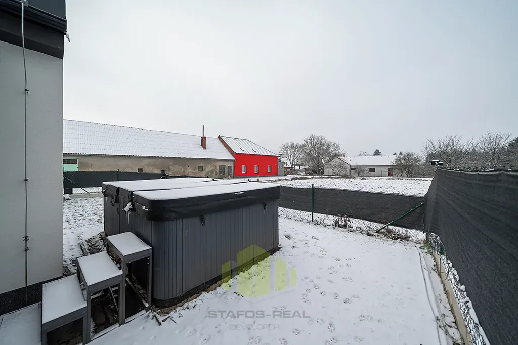 Rodinný dům nabízí dispozici 4+kk se zastavěnou plochou 153 m² (užitná plocha 127 m²) na pozemku o výměře 455 m². Praktické řešení interiéru zahrnuje zádveří, prostorný obývací pokoj s velkorysou moderní kuchyní, který má přímý vstup na terasu přes velkoformátový HS portál, ložnici s přístupem na zahradu, dva dětské pokoje, koupelnu, samostatné WC a garáž. Součástí domu je také pochozí podkroví pro skladování a velká terasa přizpůsobená k relaxaci či grilování. Dům dále nabízí zahradu s dostatkem prostoru pro odpočinek nebo dětské hry, kde je umístěn nový vířivý bazén značky HANSCRAFT.