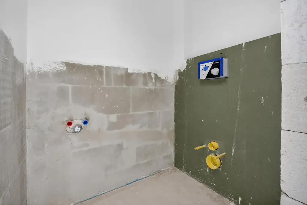 Interiér je připraven k dokončení, což novému majiteli umožňuje zvolit si obklady, sanitu i kuchyň dle vlastního vkusu a rozpočtu.