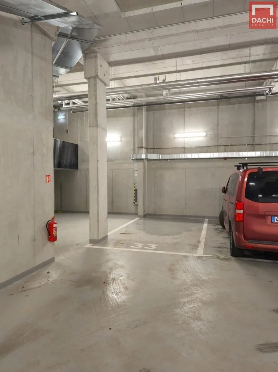 Stání se nachází v uzavřených prostorách garáží, přístupných pouze rezidentům objektu, s vjezdem zabezpečeným vraty na dálkové ovládání.