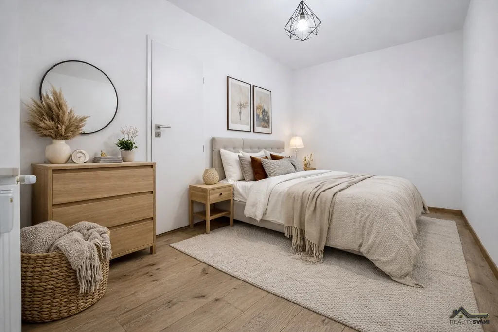 Součástí fotek je i vizualizace pro lepší představu, jak se byt dá vybavit.