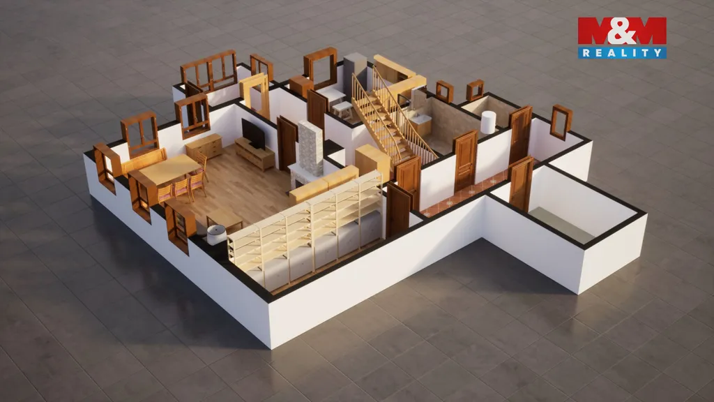 Dům prošel rekonstrukcí a je připraven k okamžitému užívání. V přízemí se nachází obývací pokoj s krbem, kuchyně, koupelna a samostatné WC. V patře jsou dvě světlé ložnice s výhledem do zeleně. Masivní nábytek je součástí prodeje a podtrhuje horský charakter nemovitosti. Vyvložkovaný komín navíc zajišťuje bezpečný provoz krbu.