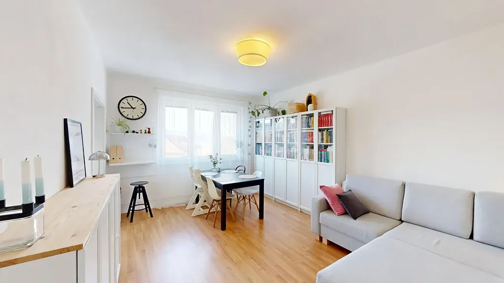 Změnou dispozice vznikl velice příjemný a moderní prostor. V koupelně je umyvadlo a velký sprchový kout. Toaleta je samostatná s umývátkem. Veškerá okna jsou na J s krásným výhledem do okolí. Lokalita je klidná, plná zeleně. Velké okno u jídelního stolu působí velice příjemně a celý obytný prostor je krásně prosvětlený. Propojením kuchyně s obývacím pokojem vznikl moderní prostor, kde může celá rodina společně komunikovat, i když se každý zabývá něčím jiným, od vaření dobrého oběda, přes psaní úkolů u jídelního stolu k vyřizování e-mailů na sedačce v obýváku. Však to znáte. Ale když chcete mít klid, můžete se zavřít v prostorné ložnici. Byt se prodává kompletně zařízený vkusným nábytkem.
