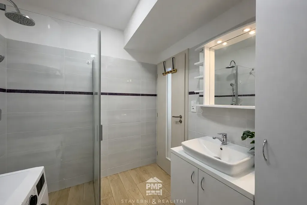 Interiér bytu je prakticky řešený a připravený k okamžitému nastěhování. Kuchyňská linka je vybavena spotřebiči – myčkou, lednicí, troubou a varnou deskou. Koupelna disponuje sprchovým koutem, toaletou, umyvadlovou skříňkou a pračkou. Součástí vybavení je také skříň, sedačka a stůl se čtyřmi židlemi. Vstupní chodba určená pouze pro tento byt disponuje botníkem s věšáky a skříní, jako úložný prostor navíc. Vytápění bytu je podlahové. Byt je ideální pro jednotlivce nebo pár (max. 2 osoby). Majitel preferuje nájemce bez domácích mazlíčků. Energetická náročnost budovy: třída D.