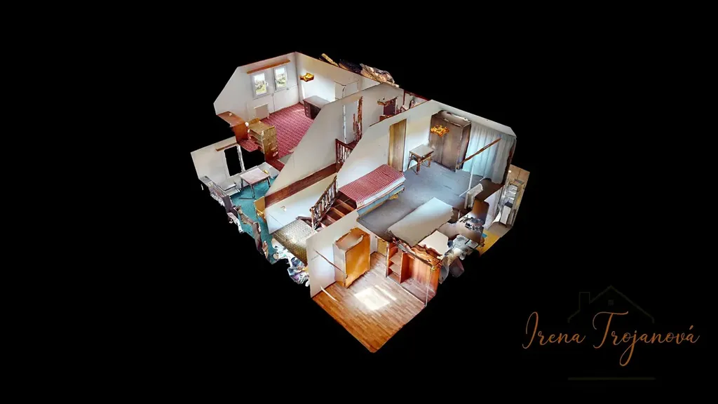 V patře (56 m2) se nachází dvě prostorné ložnice 20 m2 a 15 m2, druhé WC, hala a půdní prostor, který lze využít k dalšímu rozšíření obytné plochy nebo jako úložný prostor.