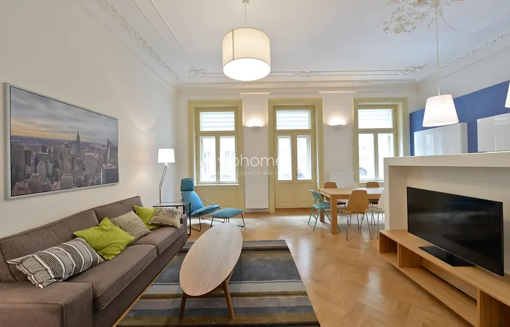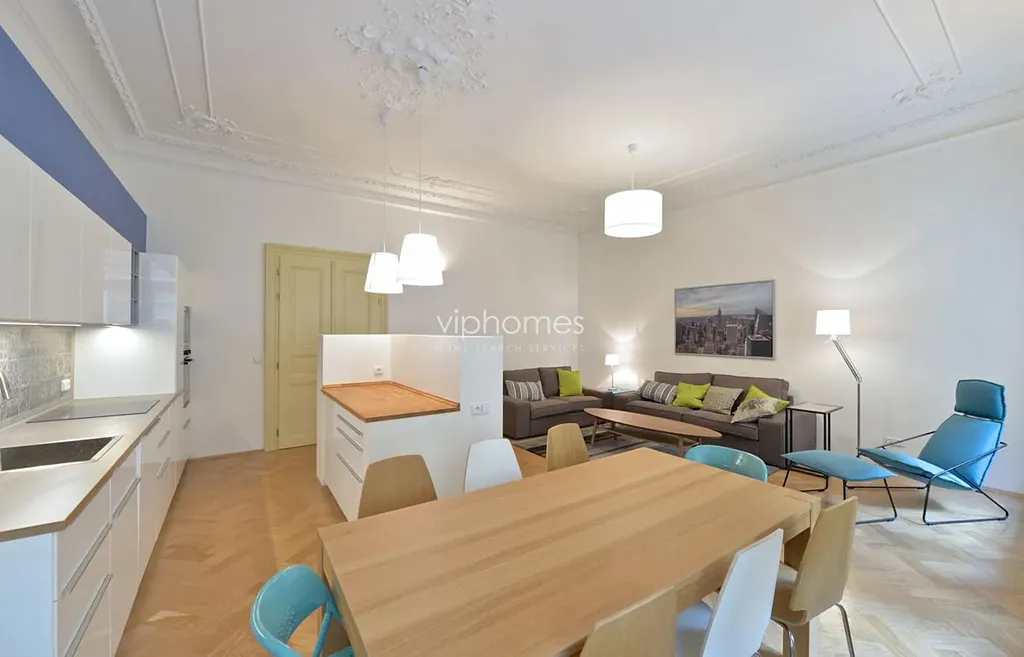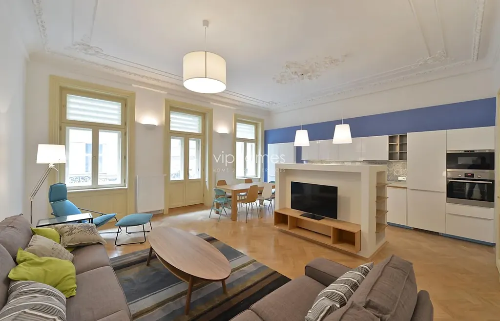 Vkusně zařízený a vybavený byt 112 m2 s balkonem ve třetím patře nově zrekonstruovaného rezidenčního projektu v klidné ulici, nedaleko obchodního centra Palladium, oblíbeného komplexu obchodů a restaurací. Dvě minuty chůze k nejbližšímu metru na Nám. Republiky, četné tramvajové spojení do všech částí Prahy.