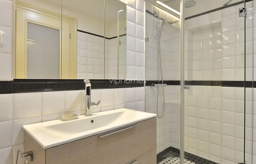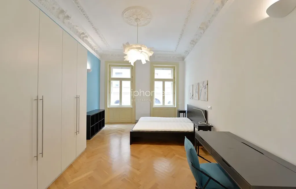 Původní architektonická ornamentace, vysoké stropy, dřevěné parkety, štuky. K vybavení patří vestavěné skříně, zatemňovací rolety v ložnicích, pračka, myčka