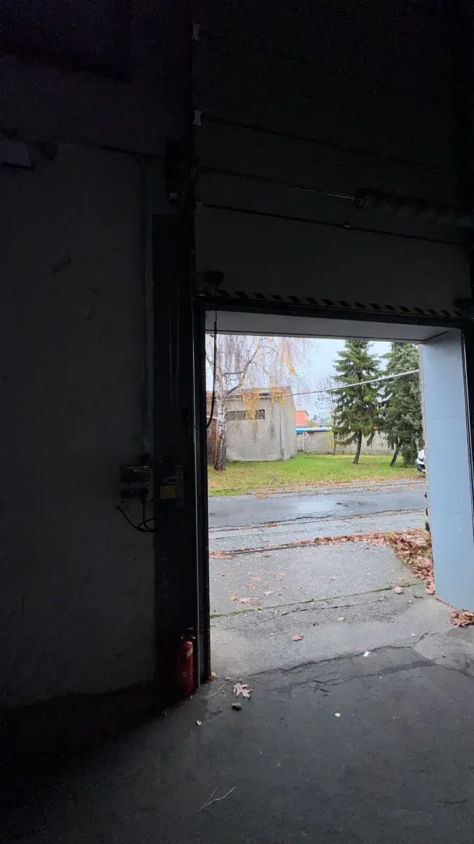 ✅ Vstup: Elektricky ovládaná vrata o rozměrech 3,3 m × 2,5 m – umožňují snadný příjezd dodávek i menších nákladních vozidel