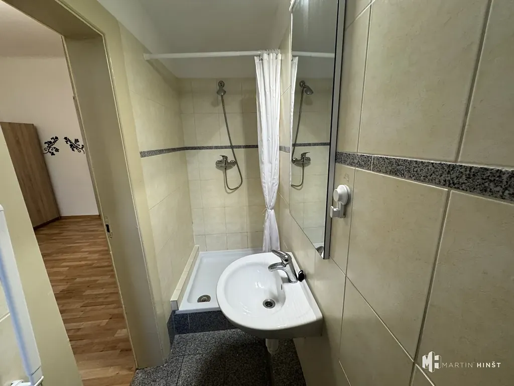 Interiér je chytře řešený, nabízí dostatek přirozeného světla a funkční zařízení. Kuchyňský kout je vybaven základními spotřebiči, pro pohodlné každodenní vaření. V obytné části je dostatek prostoru pro umístění postele a obývacího koutu. Koupelna se sprchovým a toaletou. Byt je vytápěn elektrickým topením.