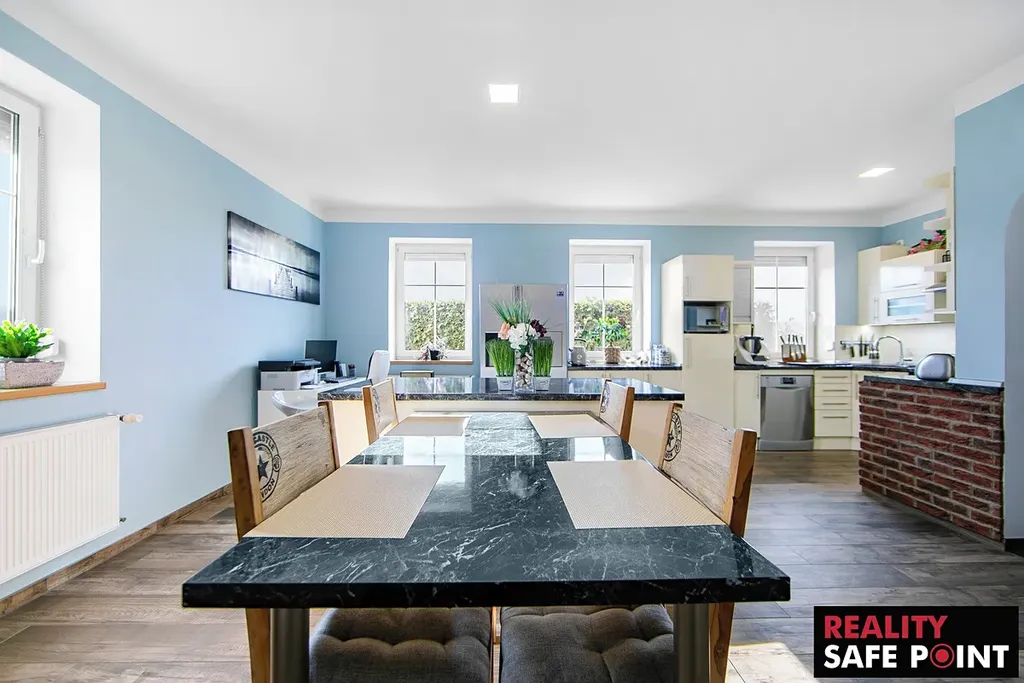 - samostatná vytápěná zahradní místnost s kuchyňským koutem (22 m²) – přístupná samostatným vstupem ze zahrady, vhodná jako letní kuchyně, společenská místnost či zázemí pro hosty.