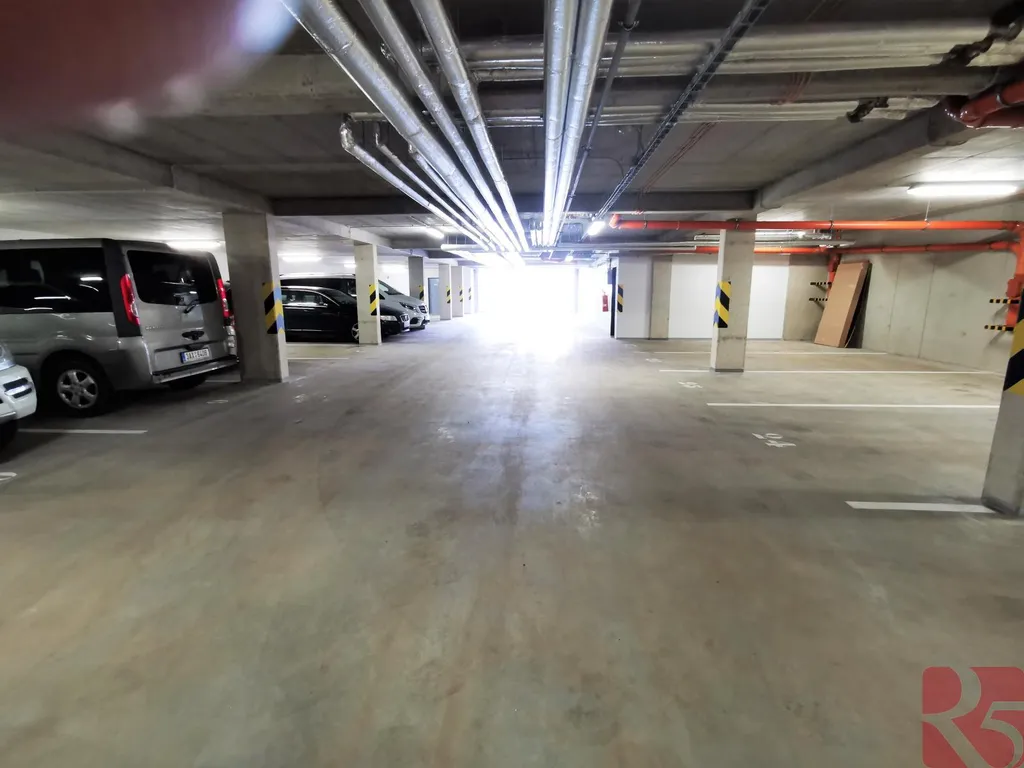 Garážové stání s nachází v 1.PP novostavby, vjezd vraty na dálkové ovládání.