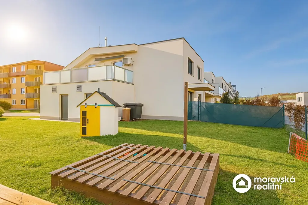 K bytu dále náleží skladovací prostor na patře (2,1 m2), vlastní parkovací stání a podíl na společné kolárně. Vedle domu se nachází soukromé dětské hřiště, které ocení zejména rodiny s dětmi.