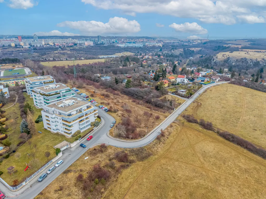 Výhodou je také skvělá dopravní dostupnost díky blízkosti metra a napojení na hlavní komunikace i dálniční síť. Mírný svah pozemku poskytuje pěkné výhledy na okolí a umožňuje variabilní využití.