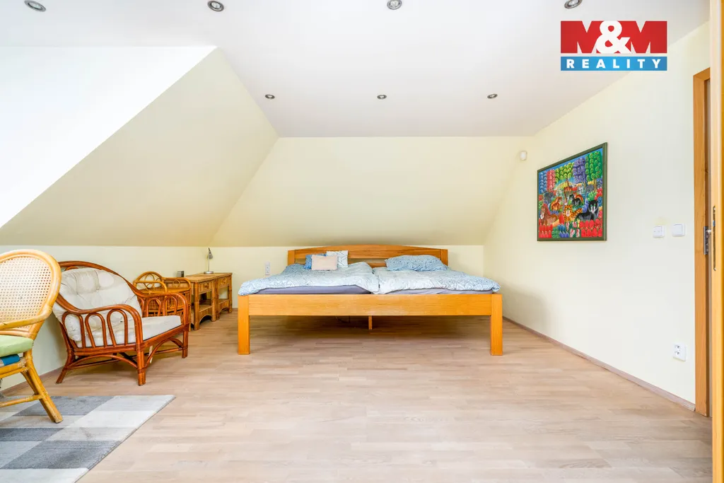 Nabízíme k prodeji prostorný rodinný dům v příjemné části Ořechu, s umístěním na okraji obce, což zajišťuje klid a soukromí. Dům stojí na pozemku o výměře 1097 m² a celková užitná plocha je 262 m² (včetně garáže pro 2 auta o ploše 57 m²). Interiér je uzpůsoben potřebám současného majitele a dispozičně je řešený jako 3+kk s možností předělání do původní dispozice 5+kk. Pro volný čas a relaxaci je připraven bazén na zahradě, sauna a solárium v patře. Tato nepřehlédnutelná nemovitost nabízí komfortní bydlení pro rodinu hledající prostor a soukromí s rychlým spojováním do přírody i města. Kousek od obce se nachází Radotínské údolí, přímo v obci pak mateřská a základní škola, obchody a restaurace. Spojení do Prahy zajišťuje autobus MHD, který jezdí na stanici metra B - Luka. Pro více informací kontaktujte makléře