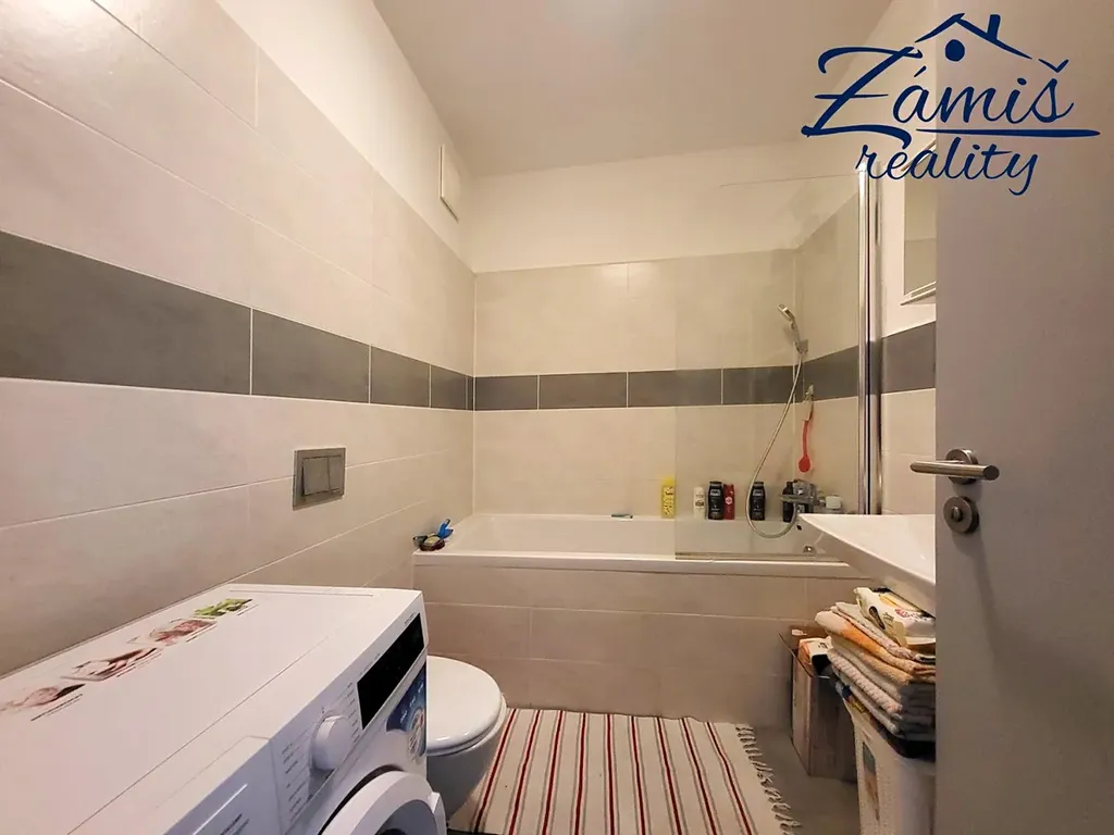 V koupelně je vana se sprchovou zástěnou, umyvadlo se zrcadlem, WC a přípojka na pračku. V bytě je ještě druhé, samostatné WC.