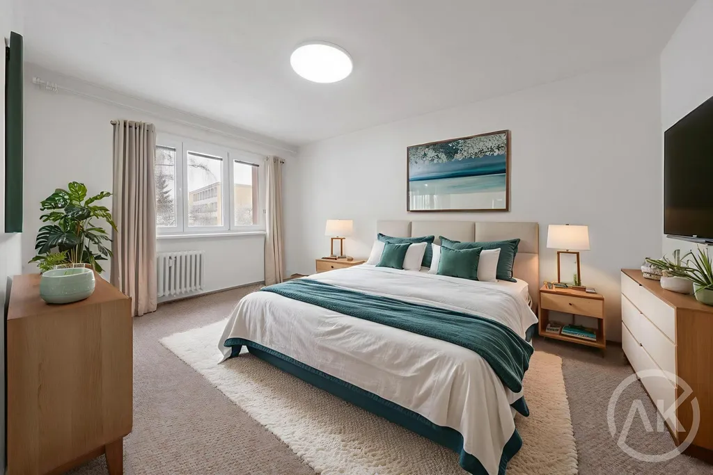 - čerstvě vymalováno, nový a čistý koberec, skříň v předsíni, sušák na okně a velká, zděná sklepní kóje,