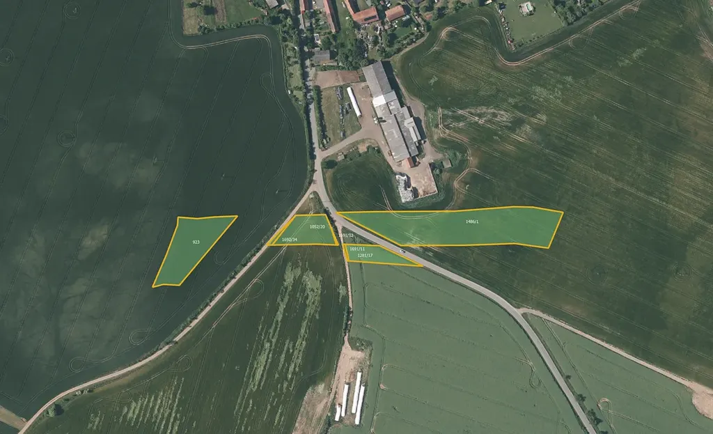 Celková výměra těchto pozemků činí 13 772 m², z toho je 13 630 m² orné půdy a 142 m² ostatní plochy.