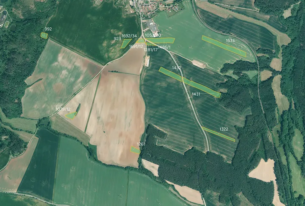 Jedná se celkem o 26 parcel s rozmanitým využitím: