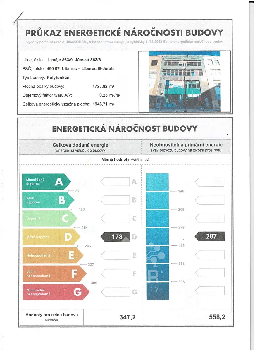 | Ukazatel energetické náročnosti | 347200 kWh/m2 za rok |