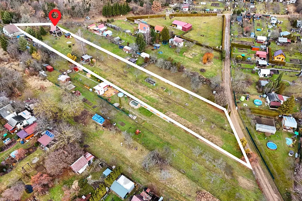 • na přilehlé druhé zahradě (podíl 7/16) se nachází chatka, kopaná studna, ovocné i okrasné stromy a keře (maliny, rybíz, borůvky)