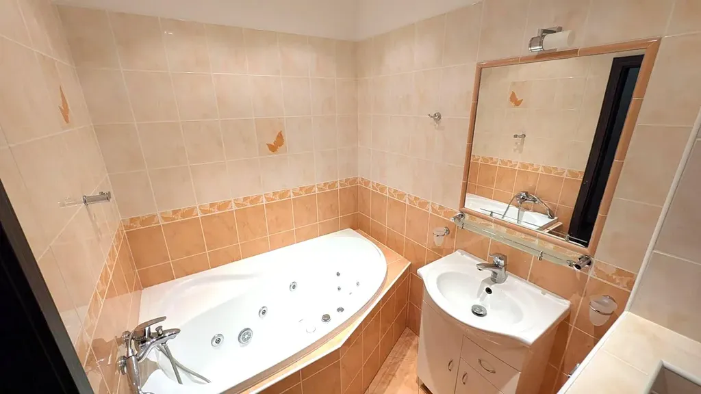 Byt je kompletně až nadstandardně vybaven a připraven k okamžitému nastěhování bez dalších nákladných investic. V kuchyni je kuchyňská linka s vestavnými spotřebiči na míru, pračka a lednice. Hlavní předností koupelny je hydromasážní vana kterou si zamilujete, je zde umyvadlová skříňka se zrcadlem a WC. V předsíni jsou vestavěné skříně.