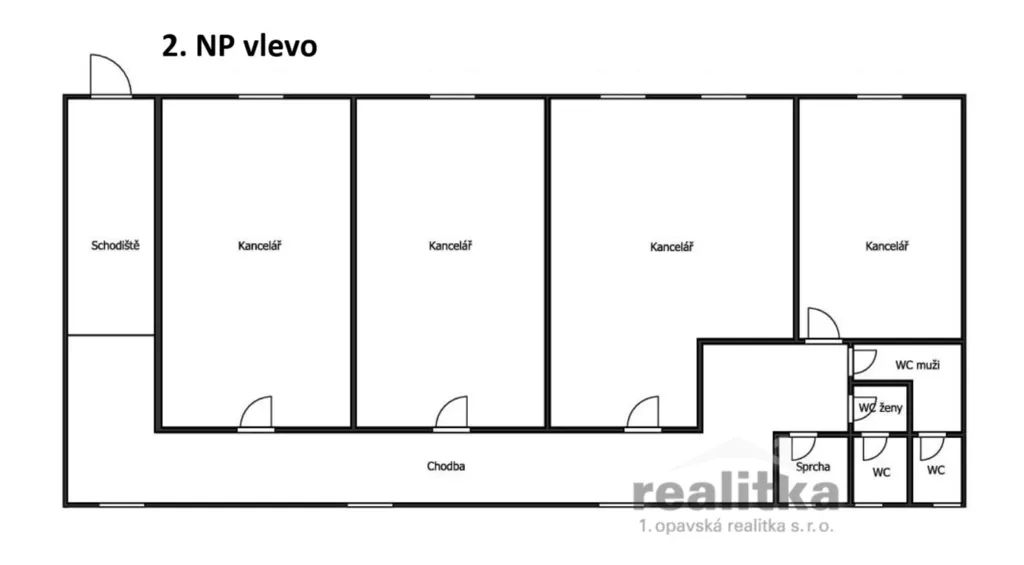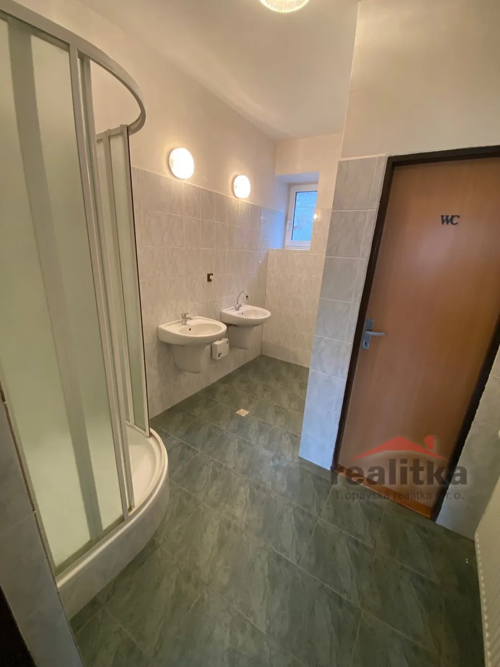 Administrativní zázemí: 4 samostatné kanceláře, chodba s kuchyňkou, sociální zařízení (WC muži, WC ženy) a místnost se sprchou.