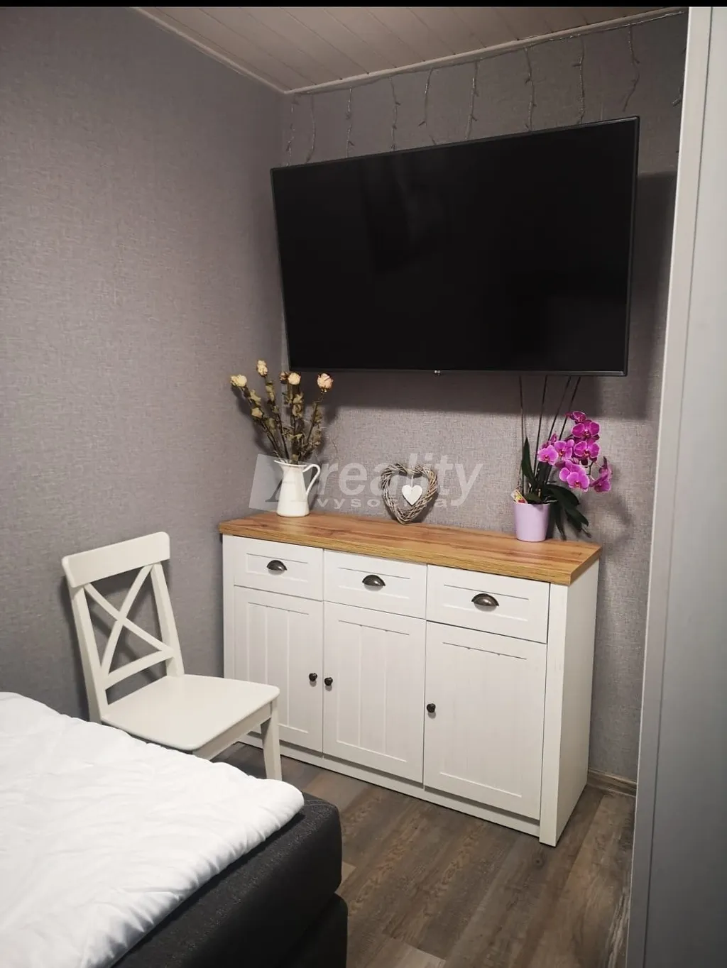Interiér působí velmi útulně díky dřevěným stropům a kvalitním vinylovým podlahám, v koupelně je položena dlažba a moderní obklady. Samozřejmostí jsou nová plastová okna.