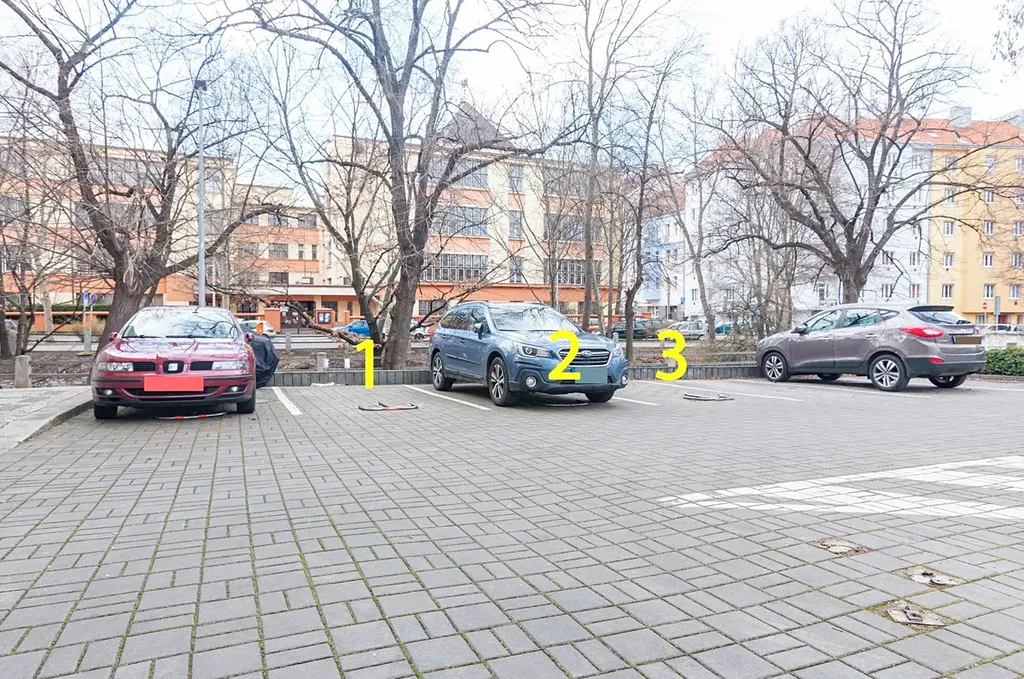 volné je stání č. 3 (4. zleva od domu)