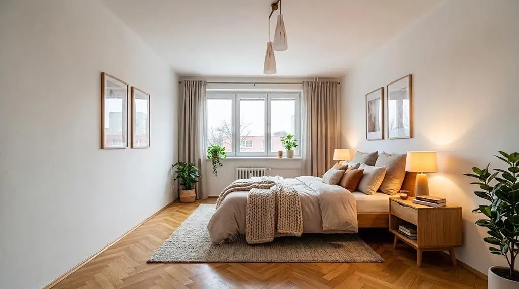Byt má 52 m2 celkové plochy, a to včetně dvou sklepů (celkem 4 m2) a nachází se ve druhém podlaží domu, okna jsou plastová, orientovaná na jih ke komunikaci. Obývák má 18 m2, ložnice 16 m2 – tyto místnosti dělí dvoje dveře a chodba bytu, takže v ložnici neuslyšíte, jak v obýváku je puštěná televize.