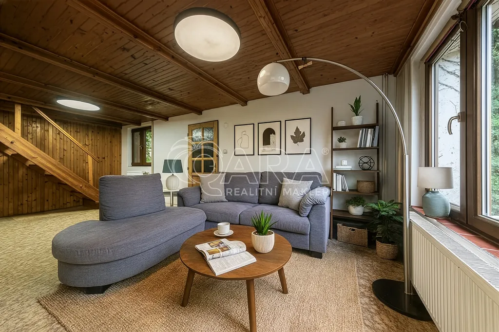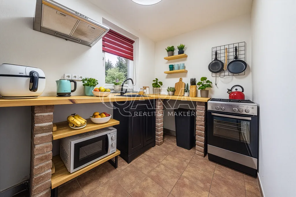 Chata je částečně zařízená – k dispozici je myčka nádobí, mikrovlnná trouba, lednice, odsavač par, pračka a sušička, takže je připravena k okamžitému užívání bez nutnosti dalších investic.