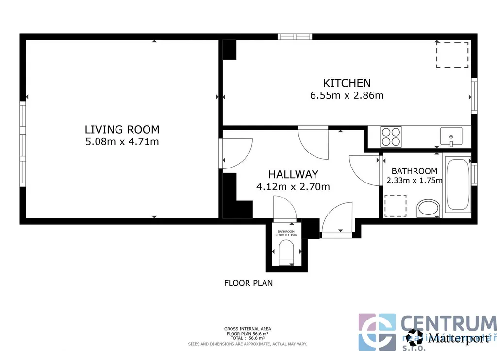 Díky velkoryse pojatému dispozičnímu řešení a ploše 56 m je byt velmi dobře rekonstruovatelný na dispozici 2+1. Jednoduchou stavební úpravou tak získáte plnohodnotný dvoupokojový byt, který výrazně navýší jak komfort bydlení, tak i tržní hodnotu nemovitosti. Byt disponuje vysokými stropy, které přímo vybízejí k vybudování vrchního spacího patra (mezonetu). Toto moderní a velmi oblíbené řešení vám umožní maximálně využít celý objem prostoru bytu.