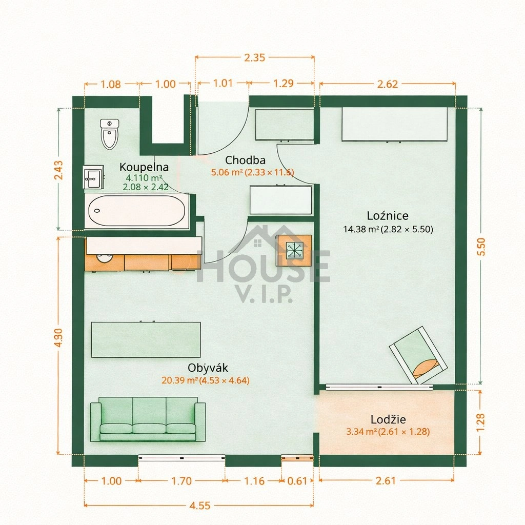 Dispozice zahrnuje obývací pokoj s kuchyňským koutem, samostatnou ložnici, koupelnu s vanou, předsíň s úložnými prostory a lodžii s příjemným výhledem. Byt působí velmi čistě, vzdušně a je připraven k okamžitému nastěhování.