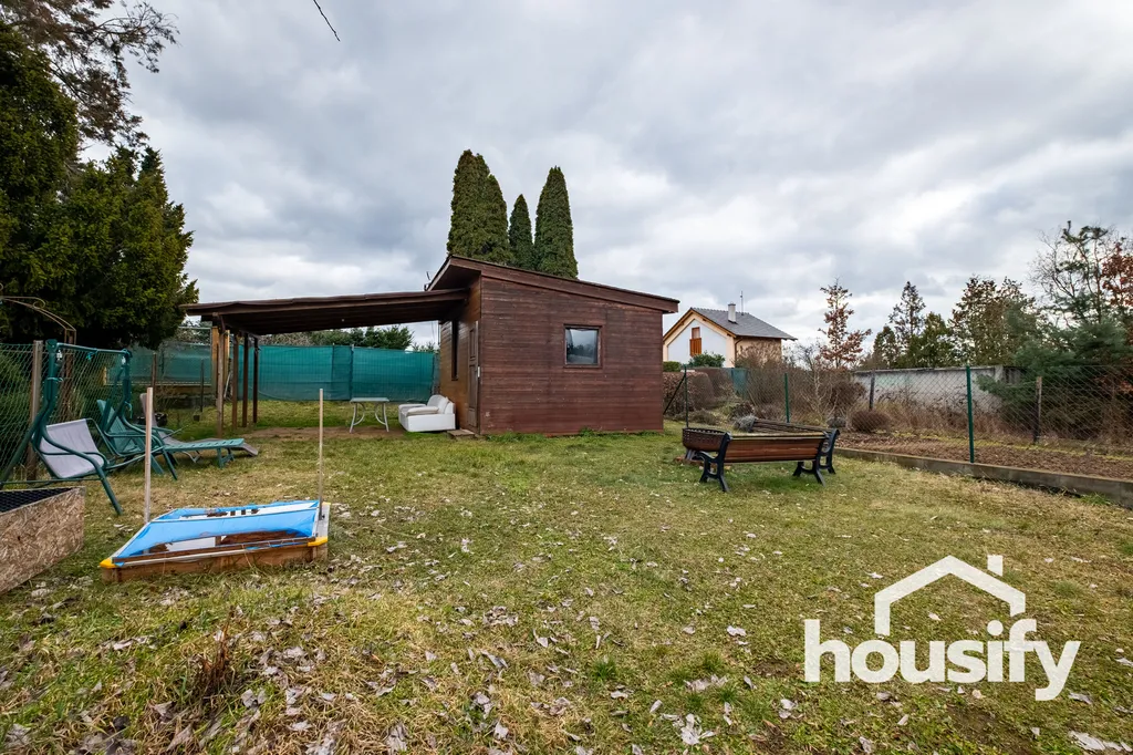 Na zahradě se nachází chatka s možností přespání, která poskytne zázemí pro víkendový pobyt nebo sezónní rekreaci. Pozemek je přístupný autem a parkování je možné přímo na pozemku.