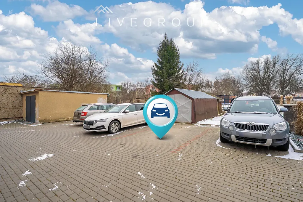 K bytu náleží vyhrazená parkovací stání pro automobil i motorku, které jsou zabezpečeny elektrickou bránou. Obyvatelé domu mají navíc k dispozici udržovanou společnou zahradu o nadstandartní ploše 1363 m2, která je ideální na setkávání se s přáteli, či ideální pro děti.