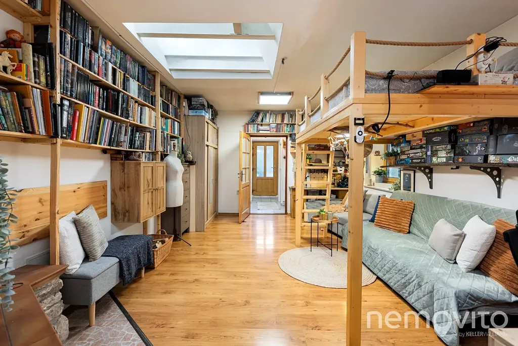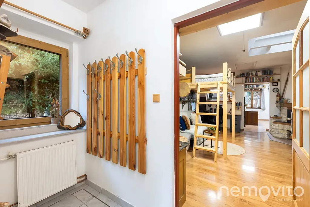 Dům je od svahu oddělen masivní opěrnou zdí a je zkolaudován jako rodinný dům s číslem popisným (není to předělaná chata). Byl využíván k trvalému celoročnímu bydlení. Dispozice je velmi jednoduchá. Dvě místnosti, plocha zhruba 50 m2, vestavěné spací patro a půda. WC je od koupelny oddělené. V rámci rekonstrukce byla řešena kuchyně, koupelna, podlahy, štuky, stropy, střecha, elektřina, voda, odpad, v roce 2024 také nová okna s trojskly a dvě nová střešní okna. Jedno okno je původní, neboť byl plánován výstup z kuchyně směrem na zahradu. Z původní stavby (cca 1920) zbylo jen obvodové zdivo.
