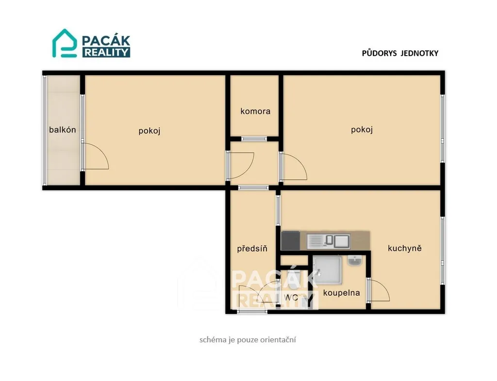 Vytápění je centrální dálkové. Dispozičně je byt velice dobře a prakticky řešen. Podlahová plocha bytu činí 57m2 + 4m2 balkón ( na jih) + sklep (1,5m2). Obývací pokoj má výměru 16 m2, ložnice 15 m2, kuchyně 13 m2, předsíň 7m2, koupelna 3 m2, samostatné WC + komora (šatna).