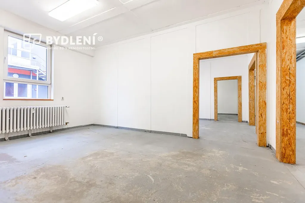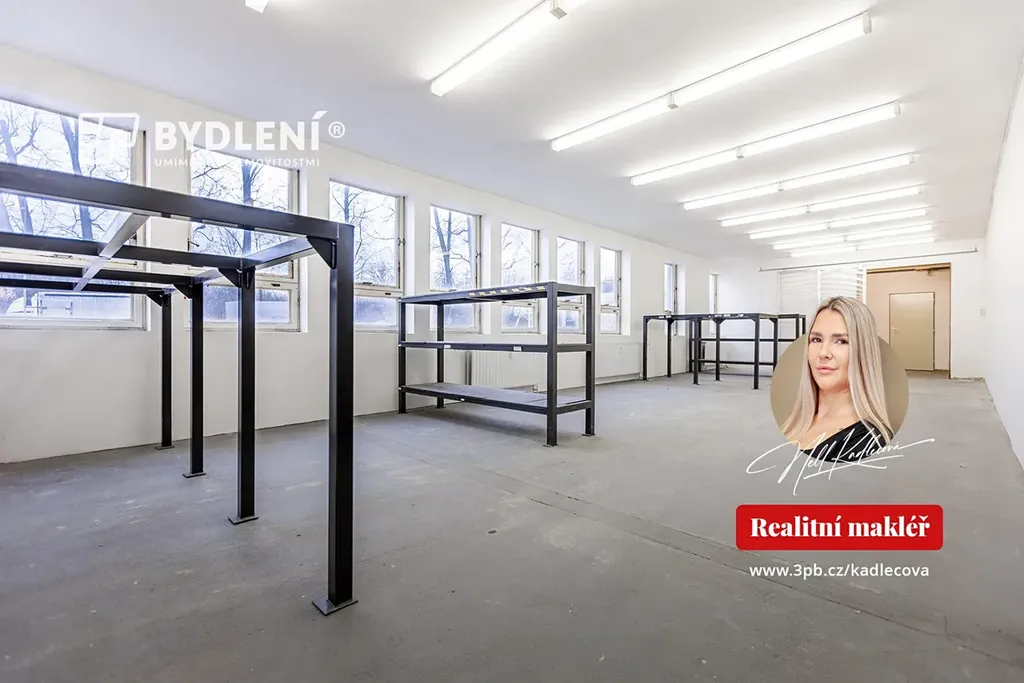 Dispozičně nabízí kancelář, kuchyňku, sociální zázemí (WC), tři menší průchozí sklady, jeden velký sklad a spojovací chodbu. Velkou výhodou jsou sekční vrata pro pohodlné zásobování a manipulaci se zbožím.