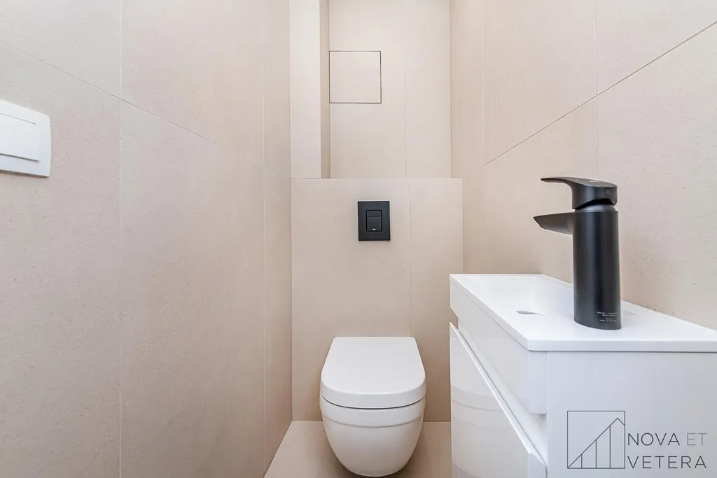 Byt aktuálně prochází kompletní a kvalitní rekonstrukcí a bude připraven k nastěhování v květnu 2026. Rekonstrukce zahrnuje nové rozvody elektřiny, vody a odpadů, moderní dřevěné podlahy, obklady a dlažbu italské značky Marazzi a koupelnu se sanitou značky Grohe. Součástí bytu bude také nová kuchyňská linka vybavená vestavnými spotřebiči prémiové značky Bosch s prodlouženou zárukou 5 let. Díky tomu bude byt připraven k okamžitému užívání ve vysokém standardu, bez nutnosti dalších investic.