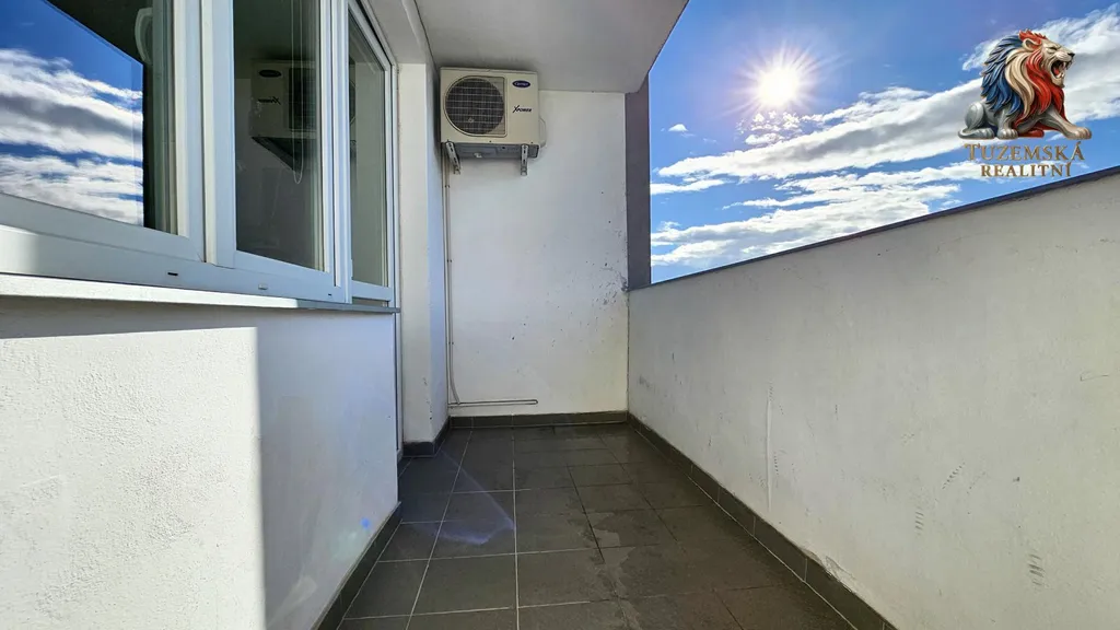 Velká lodžie poskytuje hezký výhled na město a do zeleně. Je na ni dost místa na posezení s Vaší ranní kávou, ale i například na uložení Vašich drahých jízdních kol.