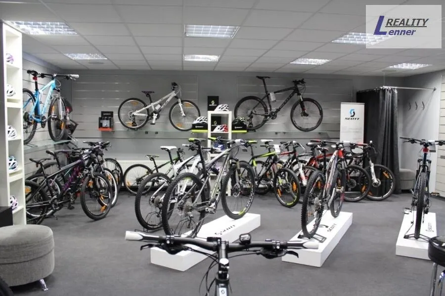 V 1. NP je prodejní plocha lyží a kol cca 100 m2 vč. toalety, dále pak kancelář 41 m2 (byt) vč. kuchyňky (bez koupelny) s toaletou vč. umyvadla (která se stěhouje do jiných prostro od 15.4.2026).