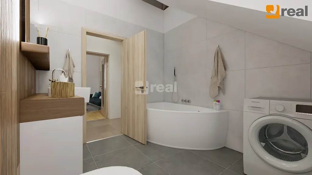 Přízemí je rozděleno na dva byty 2+1 se společnou prostornou verandou a přes tuto je pak vstup po schodech do podkroví o vel. 3+1 s balkonem a komorou. Lze zde vybudovat terasu se vstupem přímo z obývací části.