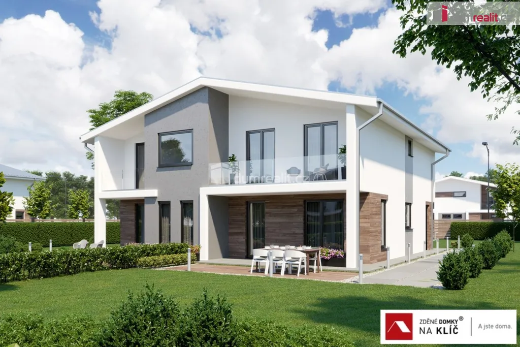 Dumrealit.cz Vám zprostředkuje exkluzivní prodej projektu půldomu o velikosti 4+kk o podlahové výměře 123 m² v Uherském Brodě části Těšov. Projekt moderního domu na úzký pozemek CLIP představuje zhmotnění pěkného designu a praktickosti. Díky absenci oken na jedné straně je dům osaditelný na hranici sousedního pozemku. Velkorysý prostor komory lze po jednoduché úpravě využít ke zvětšení obývacího pokoje s kuchyní, jako další malý klid, koupelna nebo technická místnost. Součásti uvedené ceny, která již zahrnuje DPH je dům na klíč, inženýrské sítě, přístupová komunikace a připojené místo EDG (EON), mimo plynu, pozemek, parkovací stání před domem pro dvě auta, veškeré projektové práce a stavebního povolení. Pozemek (č.3) o rozloze 569 m² je na klidném místě obce. Šíře pozemku je 10,3 m. Dle územního plánu je pozemek veden a schválen pro rodinné bydlení. Jedná se o zděnou stavbu a nabízí se ve variantě na klíč. V projektu jsou možné variabilní úpravy dispozice (posuny příček či oken). Patrový dům je ideální pro 5 člennou rodinu s nízkými provozními náklady. Uvedená cena je za pozemek, kompletní stavbu domu v provedení na klíč, projektové dokumentace, vyřízení stavebního povolení, základové desky až po kolaudaci. V uvedené ceně můžete počítat také s finálními povrchovými úpravami exteriéru i interiéru, a to včetně elektroinstalací, sanitárního vybavení s bateriemi, interiérovými dveřmi včetně obložek a vytápění bude řešeno teplovodním podlahovým topením v kombinaci tepelného čerpadla se 180L zásobníkem na teplou vodu. Dle dohody změníme systém vytápění nebo vystavíme komín pro krbové kamna nebo pro využití krbové vložky. Kryté garážové stání spojené s domem nebo venkovní krytou či nekrytou terasu za příplatek. Pro náročnější klienty máme nabídku nadstandardního vybavení chytré domácnosti, klimatizaci, externí žaluzie, rolety, rekuperaci nebo fotovoltaiku. Doba výstavby cca 12-13 měsíců od vydání stavebního povolení a stavbu zahájíme do 10 dnů od jeho vydání. Smlouvy o dílo zašleme na vyžádání včetně položkového rozpočtu. Parametry domu: užitná plocha 118 m² zastavěná plocha domu 74 m² a rozměr domu je 7 x 10,65m, což vytváří 3m proluku mezi pozemky a tím i přístup na zahradu. Dům byl navržen jako dvojdům se samostatnými dvěma domy nezávislými na sobě a odděleny protihlukovou izolací. V blízkosti je veškerá občanská vybavenost. (Součástí ceny není kuchyňská linka a světla – dokážeme za zvýhodněných podmínek zajistit přes naše dodavatele). Financování zajišťujeme a můžete využití našich služeb, při prodeji Vaší nemovitosti. Doporučuji jednak prohlídku pozemku. Tento dvojdům budeme v krátkém čase realizovat ve Zlíně. Více u makléře. Ev. číslo: 653921.