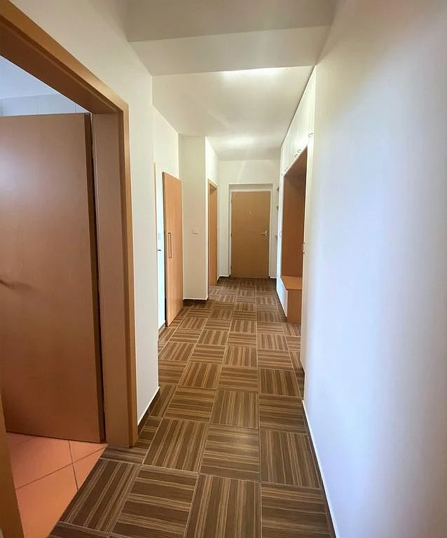 Za vchodovými dveřmi je vstupní prostorná chodba o výměře cca 7,83 m², ze které je vstup do všech ostatní místností v bytě. Chodba je vybavena prostornou vestavěnou skříní s botníkem a věšáky. Kromě tohoto úložného prostoru se v bytě nachází také komora o výměře cca 1,94 m². Jsou zde dvě samostatné místnosti, jedna orientována do ulice o výměře cca 12,1 m² a druhá o celkové ploše cca 12,2 m² je naopak situována do vnitrobloku. V této místnosti je vestavěná skříň. Koupelna o výměře cca 3,93 m² nabízí krásnou rohovou vanu, umyvadlovou skříňku s umyvadlem, stylové zrcadlo s led osvětlením a přípojku na pračku. WC je samostatné a má výměru cca 1,5 m². Kuchyňský kout s obývacím pokojem má výměru cca 29,2 m². Kuchyňská linka je vybavena sklo-keramickou deskou, troubou, mikrovlnou troubou a myčkou. V obývací části místnosti je nainstalovaná klimatizace a je zde vstup na hlavní dominantu bytu, nádhernou terasu. Terasa o výměře cca 13,73 m², nabízí výhled do vnitrobloku na dětské hřiště a je vybavena stahovací markýzou. Poskytuje svým obyvatelům klid a místo pro odpočinek a relaxaci.
