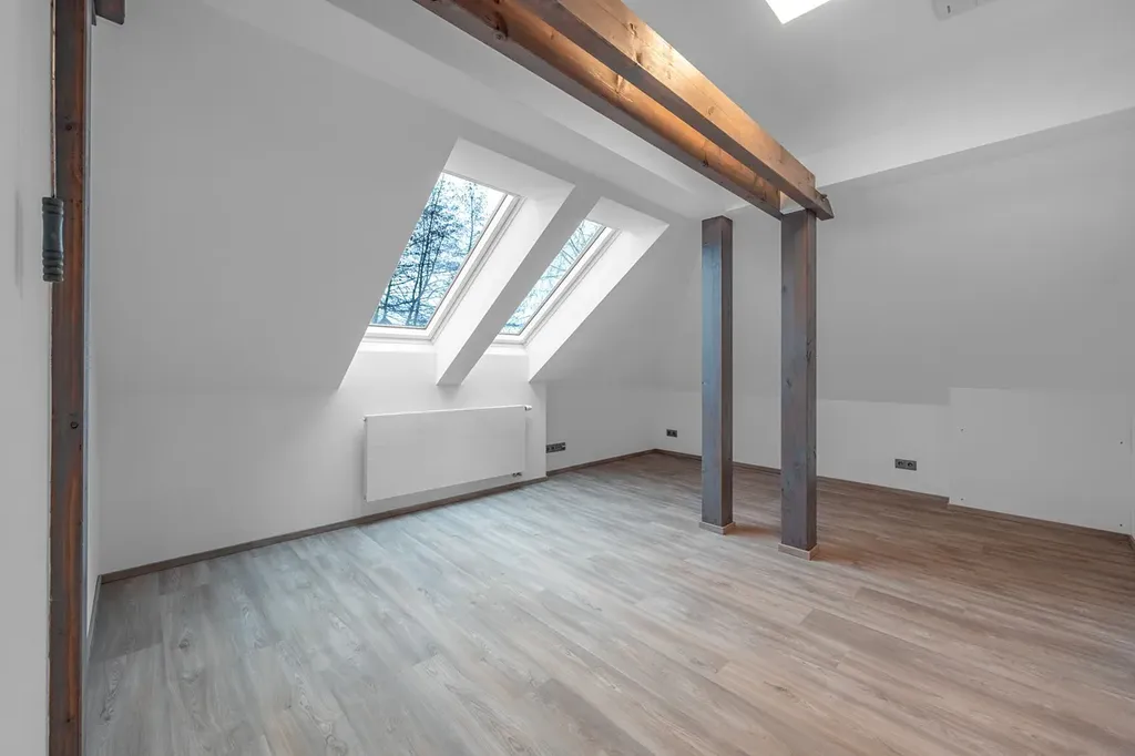 Dům prošel kompletní rekonstrukcí v roce 2024 a kombinuje moderní technologie s nadčasovou elegancí. Byt se nachází ve 2. nadzemním podlaží a v podkroví a nabízí dispozici 6 pokojů + kuchyni, ideální pro rodinné bydlení i práci z domova.