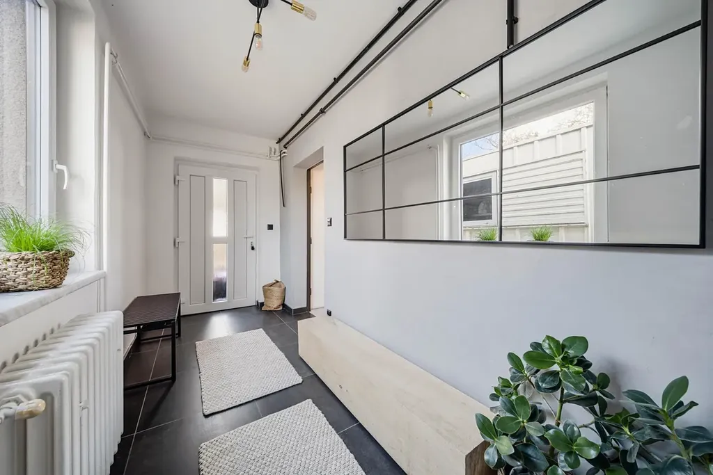 Ze zádveří je vstup do koupelny s WC a navazující chodby, která propojuje obývací pokoj s jídelnou a kuchyní. Ze schodiště se dostanete do vrchního patra, kde se nachází ložnice a samostatný pokoj vhodný jako dětský pokoj, pracovna nebo pokoj pro hosty. Ze schodišťového prostoru je zároveň vstup do menšího sklepa, který je v současnosti využíván jako spíž.