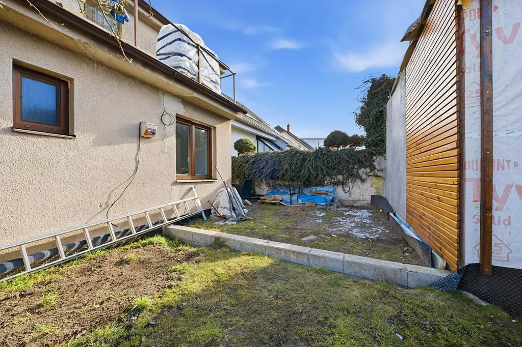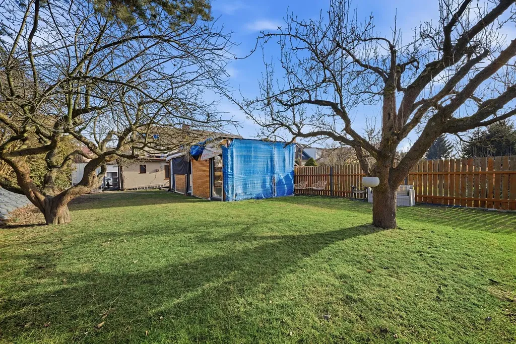 Součástí pozemku je také zahradní domek o ploše přibližně 40 m2, který nabízí možnost propojení s hlavním objektem a rozšíření užitného prostoru.Zahradní dům má izolační trojskla a jedná se o zateplený sendvičový systém, konstrukce dřevostavba. Lze jej využít například jako letní griloviště, wellness zónu, domácí kancelář nebo ateliér.